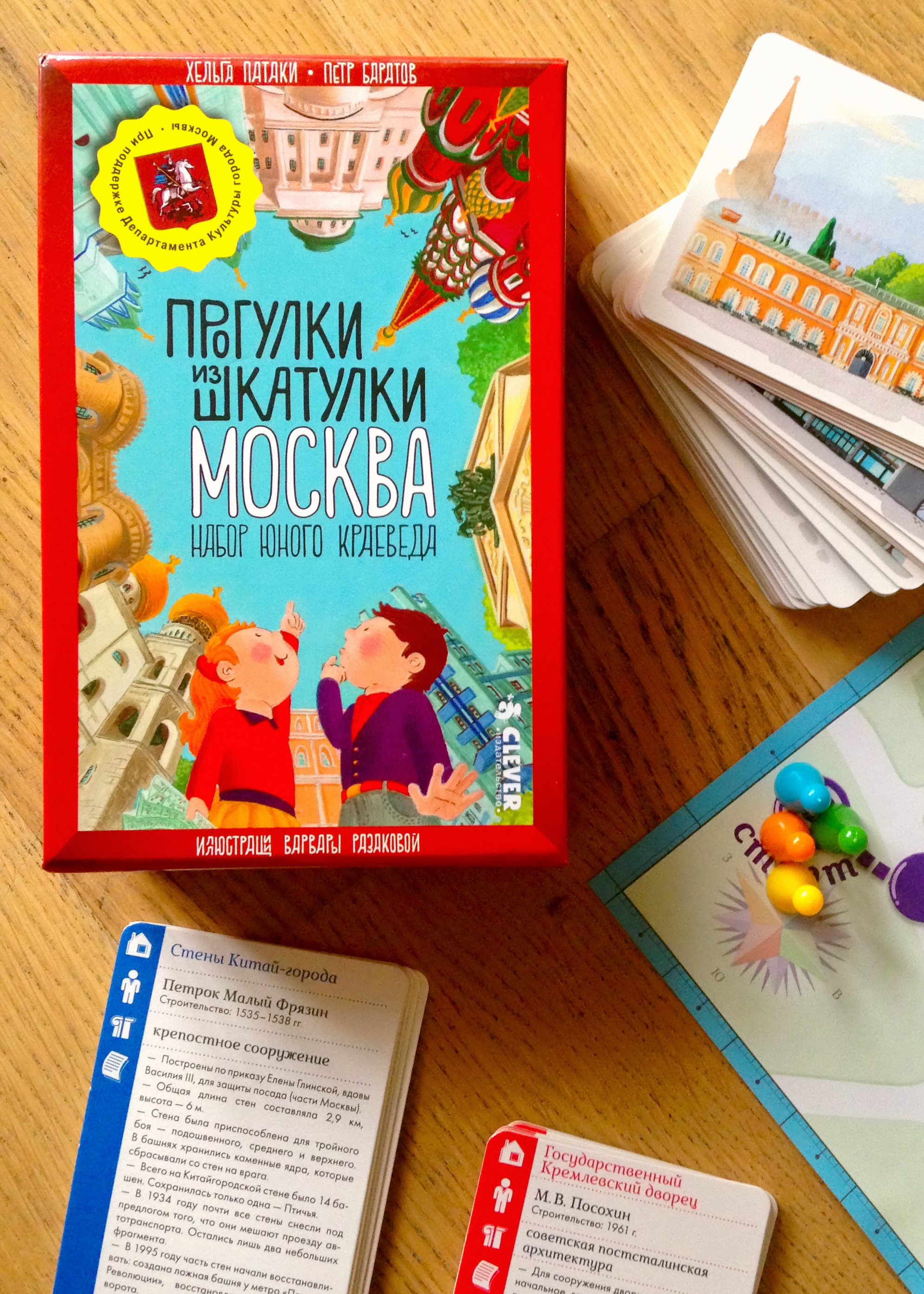 Настольная игра от издательства Clever «Прогулки из шкатулки. Москва. Набор юного краеведа» http://clever-media.ru/books/169/1686/ – это отличная альтернатива экскурсиям!